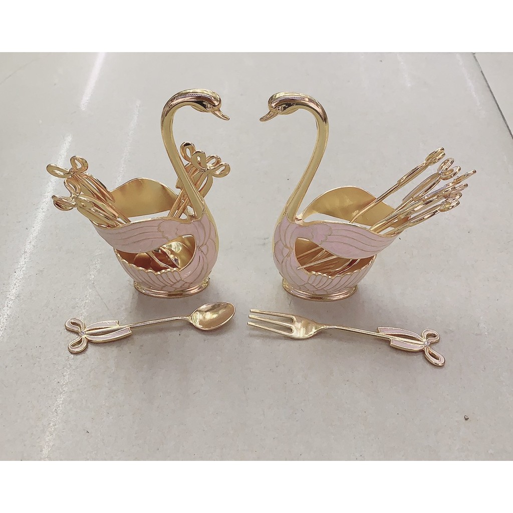 Giới thiệu Combo hai bộ giỏ thiên nga kèm 6 thìa, 6 dĩa ăn hoa quả