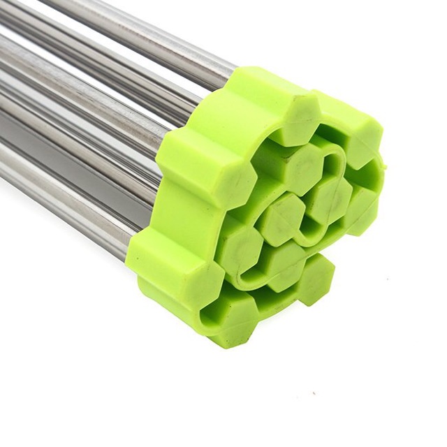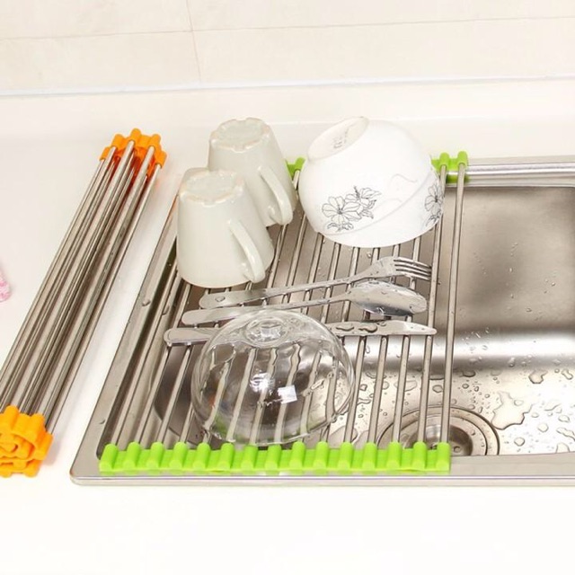 - Thiết kế đặc biệt có thể dễ dàng thay đổi độ dài tùy theo nhu cầu, thuận tiện đặt trên bồn rửa chén để xếp gọn các loại dụng cụ như xoong nồi, chảo, chén ly...