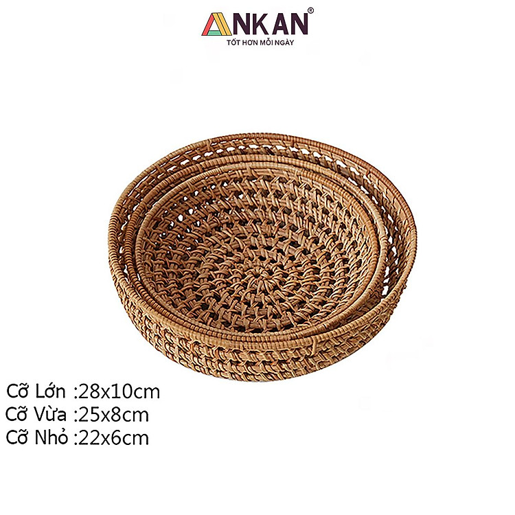 Khay Rổ Mây Tre Đan ANKAN – Đựng Trái Cây, Bánh Kẹo, Đồ Khô, Decor Nhà Ăn & Phòng Khách – Thủ Công Việt Nam