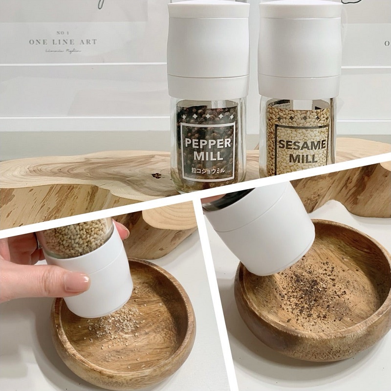 ● Khi cần sử dụng tiêu, chỉ cần xoay vặn nắp là các hạt mè bên trong sẽ được xay nghiền nhỏ