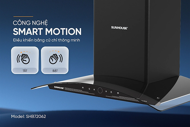 Bên cạnh bảng điều khiển cảm ứng với màn hiển thị rõ nét, nằm ngay trước tầm mắt giúp người dùng dễ dàng thao tác trong việc sử dụng, sản phẩm máy hút mùi kính cong SHB72062 còn được cải tiến với tính năng điều khiển bằng chuyển động thông minh. Chỉ bằng thao tác vẫy tay nhẹ nhàng, người dùng đã có thể bật tắt máy và điều chỉnh tốc độ hút mùi một cách tiện lợi mà không không sợ tay dính dầu mỡ làm vấy bẩn bề mặt thiết bị khi sử dụng.