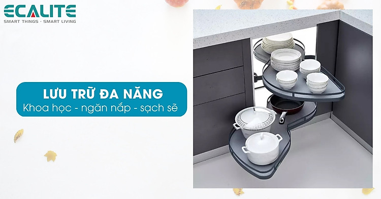 Mâm xoay hình lá T-Leaf Ecalite EL-NST900L - Phụ kiện tủ bếp hiện đại cho góc tủ bếp