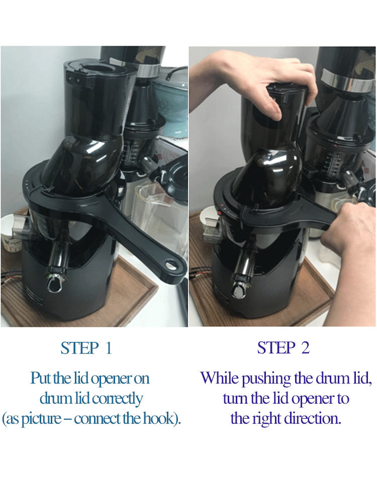 Lưu ý : Vui lòng chỉ sử dụng dụng cụ hỗ trợ mở nắp khi nắp máy ép bị kẹt rất chặt và khó mở sau khi ép. Dụng cụ mở nắp này sẽ giúp bạn mở nắp máy ép một cách dễ dàng.