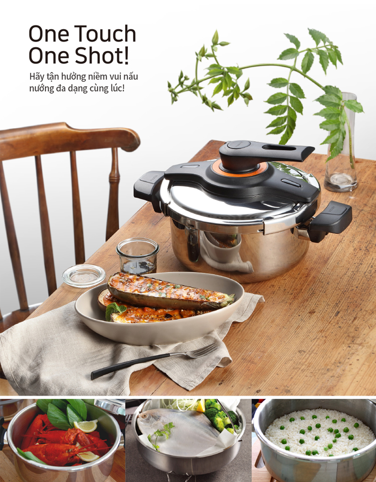 Giữ được trọn vẹn hương vị và dinh dưỡng của món ăn với thiết kế đóng mở nắp thế hệ mới “One Touch” bằng nút vặn
