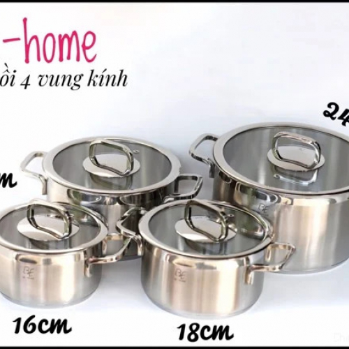 Bộ nồi inox Behome 4 chiếc vung kính là sản phẩm bộ nồi cao cấp, kiểu dáng sang trọng và hiện đại phù hợp với mọi không gian bếp gia đình Việt. Chất liệu bộ nồi làm bằng Inox 304 cao cấp an toàn cho sức khỏe người sử dụng. Với nhiều kích cỡ khác nhau: