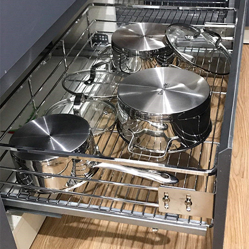 - Tay cầm có thể thu vào: Rổ chiên có thể được nhúng từ từ và điều khiển bằng cách gập tay cầm trong dầu / mỡ nóng khi đậy nắp. Để tiết kiệm không gian lưu trữ, tay cầm vẫn ở vị trí gấp.