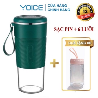 Máy xay sinh tố cầm tay mini loại thủy tinh sạc pin 6 LƯỠI YOICE 300ml - sạc 1 lần xay 5 cốc [TẶNG CỐC THỦY TINH]