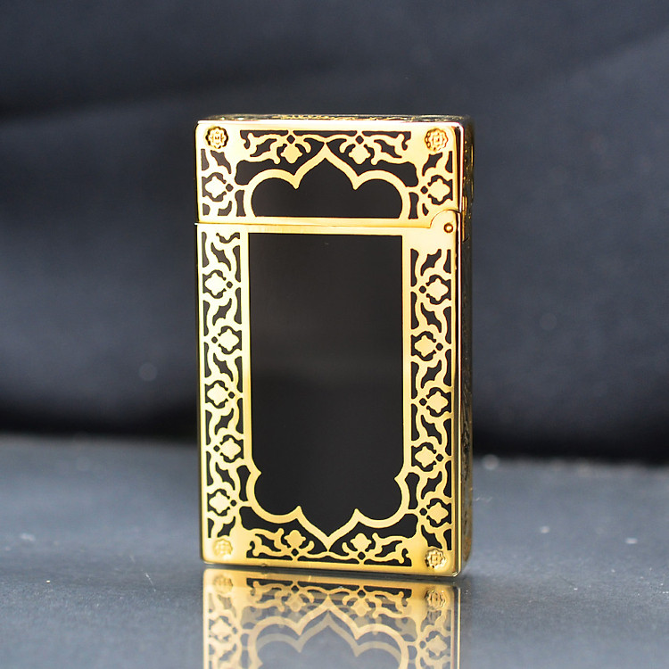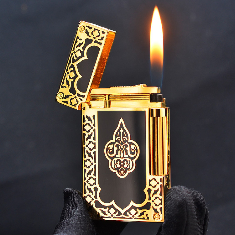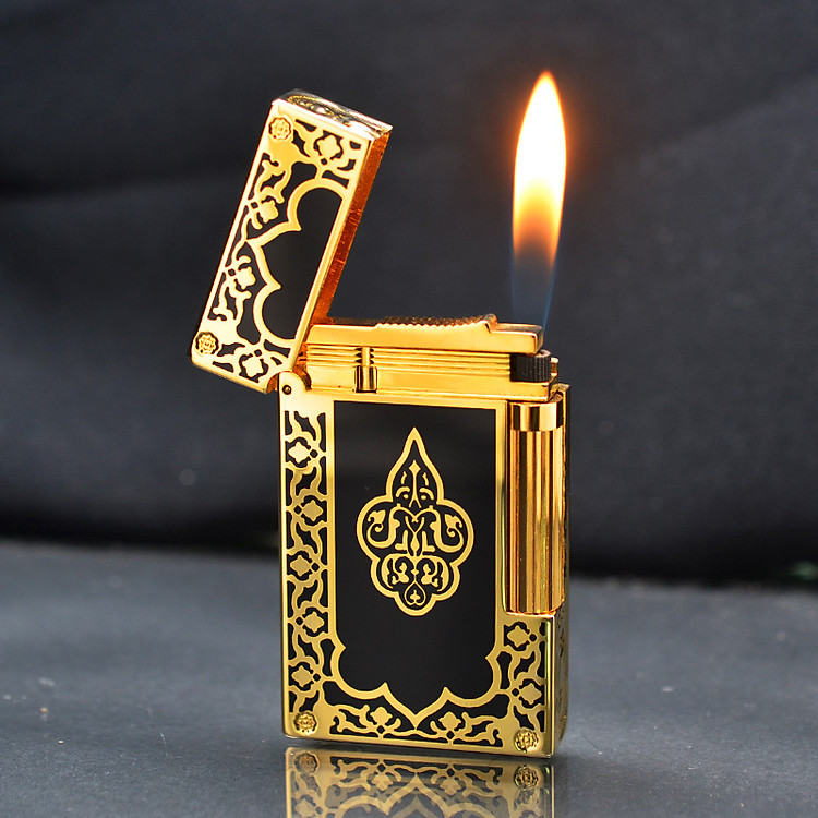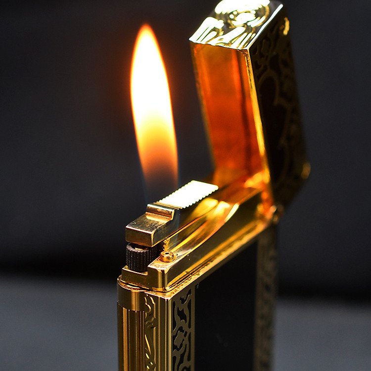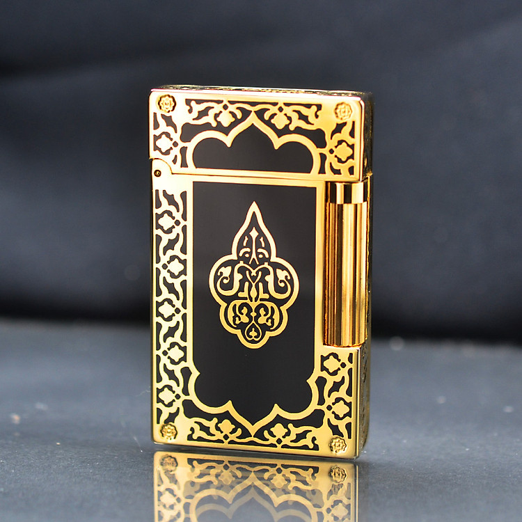 - Bật lửa sơn mài đen viền vàng tinh tế và sang trọng