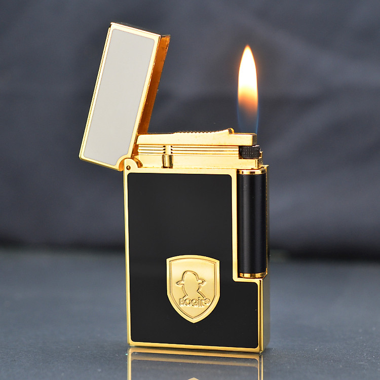 Giới thiệu Vỏ hộp quẹt bật lửa ga đá sơn mài đen viền vàng D-199V